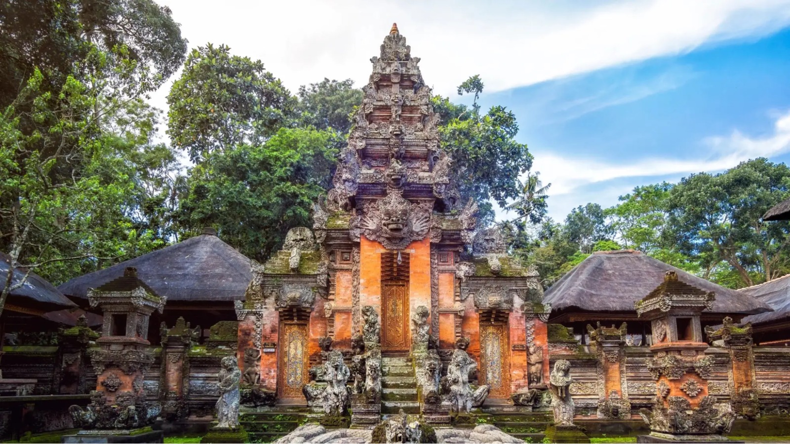 A serene sanctuary surrounded by lush greenery, where ancient Balinese spirituality meets timeless beauty.
